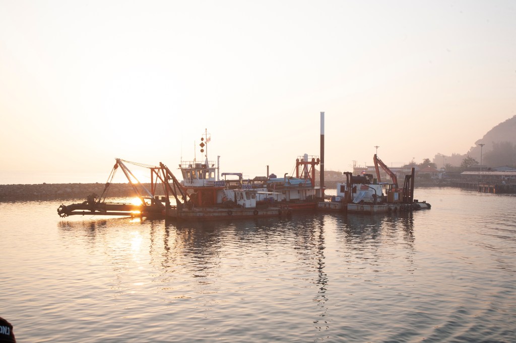 Am Abend vorher hatten wir entschieden den knappen Kilometer von unserem Gästehaus zum Hafen vielleicht doch nicht früh morgens laufen zu wollen, wir hätten Ellie wohl tragen müssen. Schlau wie wir sind, hatten wir die Wirtin gefragt ob sie uns ein Taxi vorbestellen könne für heute morgen. Sie hatte aber gesagt: „No Ploblem, you come Moning 6:20“. Hm, für das Taxi haben wir also nicht mal eine App, geschweige denn einen Zettel oder irgend etwas schriftliches. Na gut, zur Not können wir ja doch noch laufen, die Fähre fährt ja erst um 7:00.